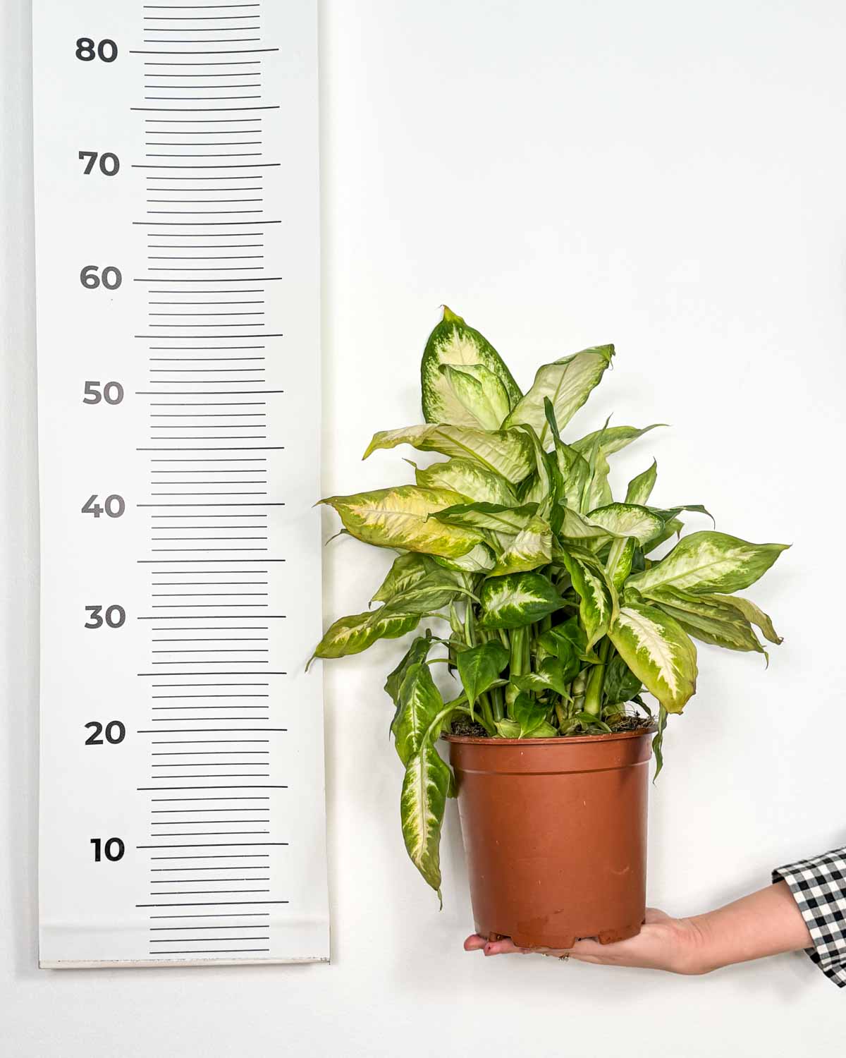 Vsi poznamo difenbahije, ampak si že videl_a tako udarno in živo difenbahijo? Sem Difenbahija ‘Camilla’ (Dieffenbachia), živo zelena in bujna rastlina, ki popolno popestri kakšen dolgočasen kotiček v tvojem domu ali pisarni. Sem izjemno enostavna in pod pravimi pogoji zrastem tudi do 90 cm visoko.