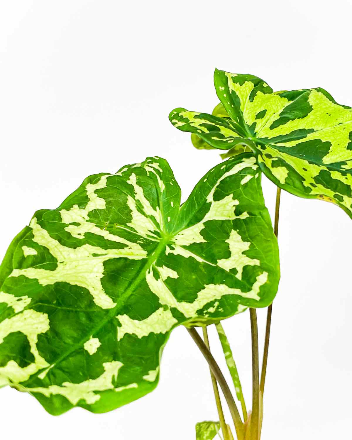 Perfekten kaladij za tvojo domačo Džunglo! K tebi pridem kot odrasla rastlina in ti popestrim dan s čudovitimi variegiranimi zelenimi listi. Rastem zelo hitro, zahtevam nenehno vlažno zemljo, svetlo mesto brez direktne sončne svetlobe in redno gnojenje.