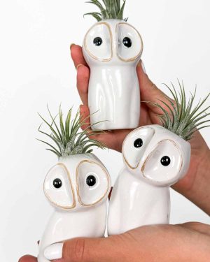 Sem Tilancija v sovica lončku (Tillandsia), edinstvena zračna rastlina, ki raste brez zemlje in se odlično prilega majhnim kotičkom ali dekorativnim lončkom. Moji srebrnkasto-zeleni listi absorbirajo vlago iz zraka, zaradi česar sem zelo nezahtevna in idealna za vse, ki imajo radi nenavadne rastline. Zrastem lahko do 15 cm v višino in širino, končno velikost pa dosežem v 1–2 letih.Vendar nisem sama! Dobiš me s srčkanim sovica lončkom, ki mojo edinstvenost le še poudari.