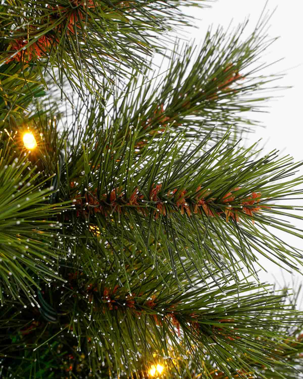 Veje so naravno rjave barve in izdelane iz kakovostnega trdega PVC-ja, konice iglic pa so belo obarvane, kar ustvari čudovit zasnežen videz. V drevo je že vgrajenih 30 toplih belih LED lučk, ki poskrbijo za prijetno praznično svetlobo. Lučke delujejo na baterije, zato ne potrebuješ vtiča – popolno za vsak kotiček doma.