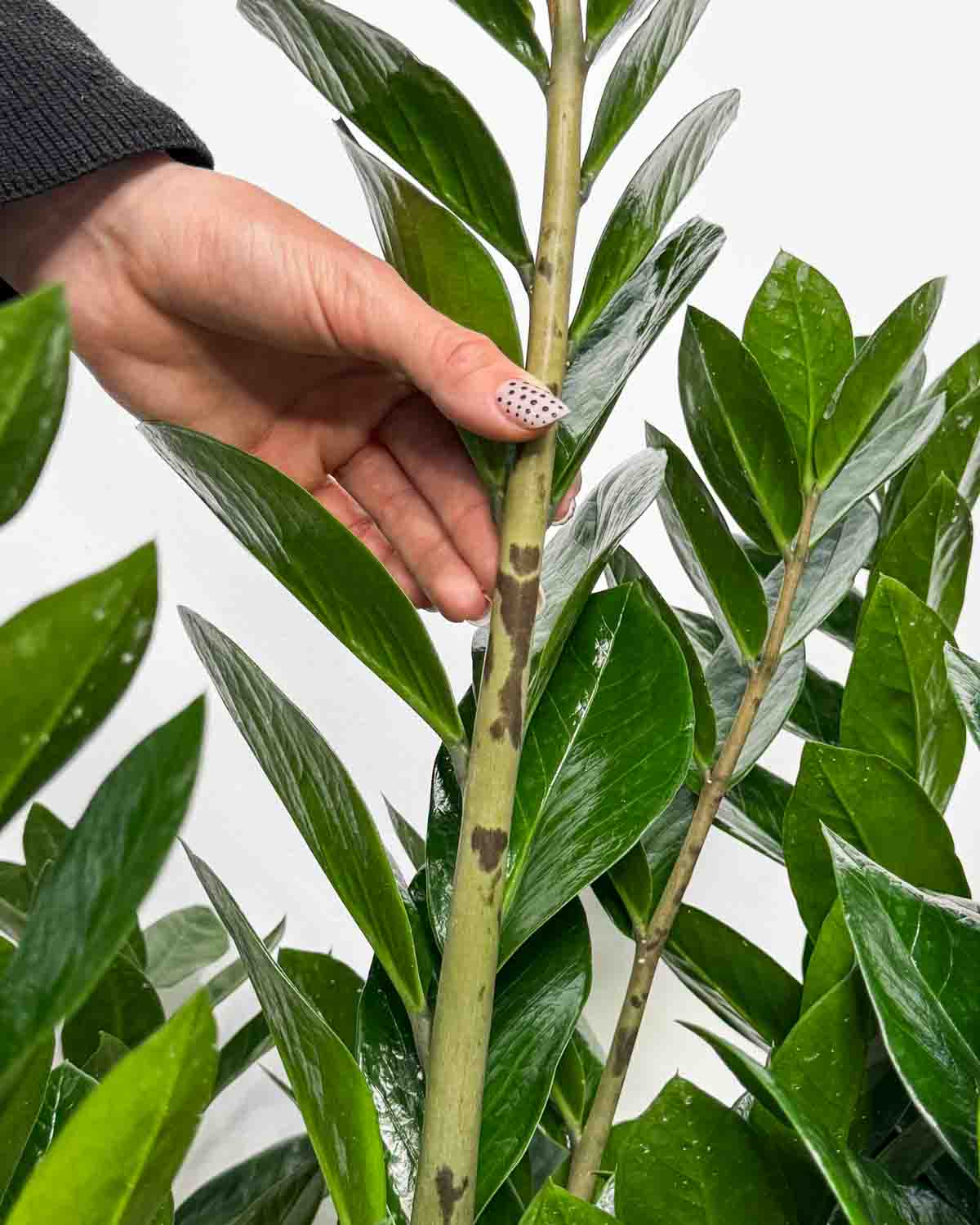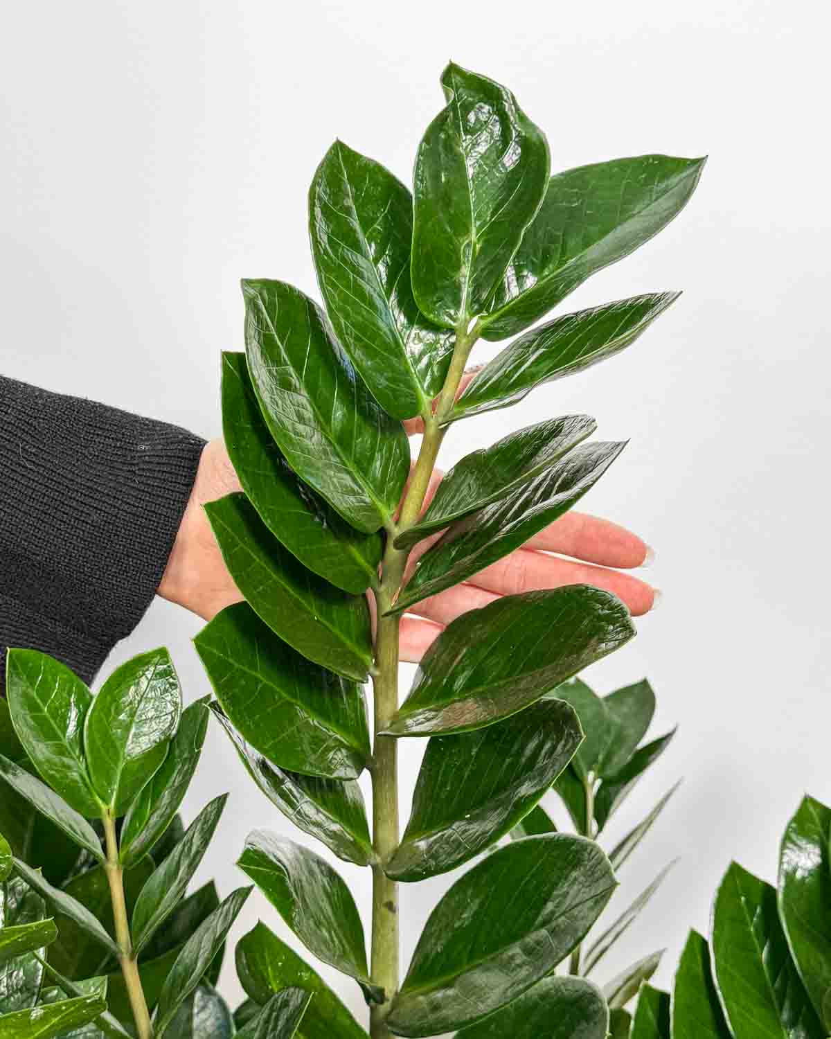 Sem Zamija (Zamioculcas zamiifolia) in sem vsestranska in nezahtevna rastlina v čudoviti temno zeleni različici. Moji listi so mesnati, kompaktni in se svetijo. Primerna sem tako za sončne kotičke kot tudi za tiste, ki imajo zelo malo svetlobe. Ker ne zahtevam veliko vode, sem lahko tudi precej časa sama doma, tako da si lahko brez skrbi privoščiš dopust.